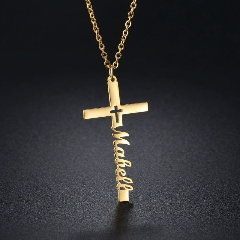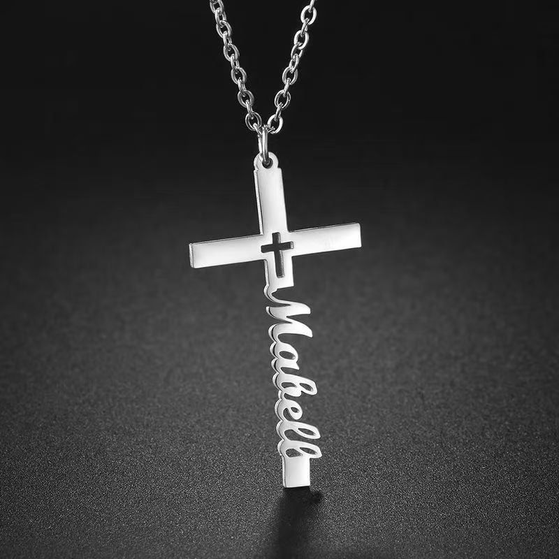 Personalized name cross necklace made of titanium steel